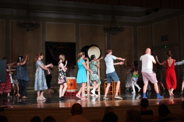 日本国内外で活躍されているプロ和太鼓チーム「和太鼓 大元組」による和太鼓と盆踊りの公演が,7月30日,31日,リエパーヤ市内の会場(Great Amber Concert Hall)とリガ市内の会場(Latvian Academy of Music)でそれぞれ行われました。公演には多数の来場があり,和太鼓,盆踊り,獅子舞等が披露され,会場からは万雷の拍手が沸き起こっていました。