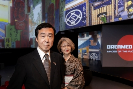 30. septembrī rīkotajā atklāšanas pasākumā vēstnieks Kavaguči sveica dalībniekus ar video ziņu, kur iepazīstināja ar ukiyo-e, kas kļuva pazīstams rietumu valstīs, izbeidzoties Japānas izolācijas periodam, un kam ir bijusi liela ietekme uz rietumu valstu māksliniekiem, sākot no impresionisma līdz jūgendstilam. Ukiyo-e ir daļa no Japānas kultūras, kas Edo periodā uzplauka izolēti, un tolaik tā bija moderna kultūra, ko galvenokārt izbaudīja labklājību ieguvušie tirgotāji. 1. oktobrī, izstādes pirmajā dienā, vēstnieks Kavaguči ar kundzi ieradās izbaudīt ukiyo-e izstādi, kas tiek izrādīta, izmantojot modernākās tehnoloģijas. (Pilns vēstnieka runas teksts atrodams šeit.)